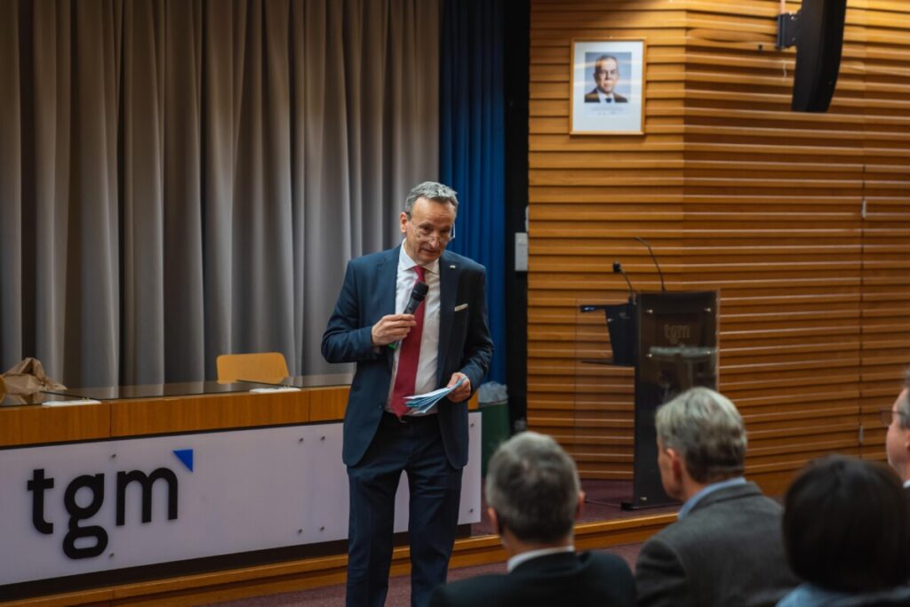 Wie alle Redner hob auch Berhard Wess die wertschätzende und umsichtige Leitung hervor. Direktor Karl Reischer habe mit seinem kooperativen Führungsstil immer ein offenes Ohr gehabt und seine Mitarbeiterinnen und Mitarbeiter mit Geduld und Gelassenheit und vor allem durch Motivation geführt und das Beste für das tgm im Blick behalten. Abteilungsvorstand Wess zeigte sich erfreut darüber, dass sich letztlich alle gegen Direktor Reischer erhobenen Vorwürfe als haltlos herausstellten und wies auf die Leistungen des ehemaligen Schulleiters hin.