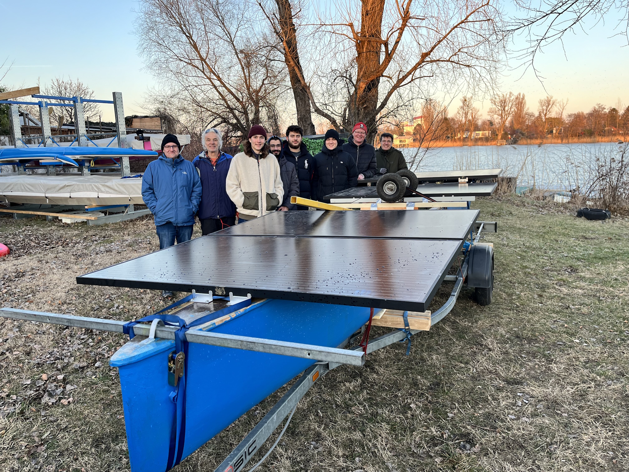 Am 30. Jänner 2024 fand die erste Probefahrt des Solarboots an der Unteren Alten Donau statt. Der verwendete Rumpf wurde zur Teilnahme an der International Waterbike Regatta 2017 gebaut und dient nun für Testfahren und als Backup für die Teilnahme unseres Boots an der Solar & Energy Boat Challenge in Monaco. Der Bau eines verbesserten und aus einem Naturfaser – Verbundwerkstoff hergestellten Rumpf beginnt nach den Semesterferien. Danke an den Ruderclub Pirat für die Benutzung der Infrastruktur.