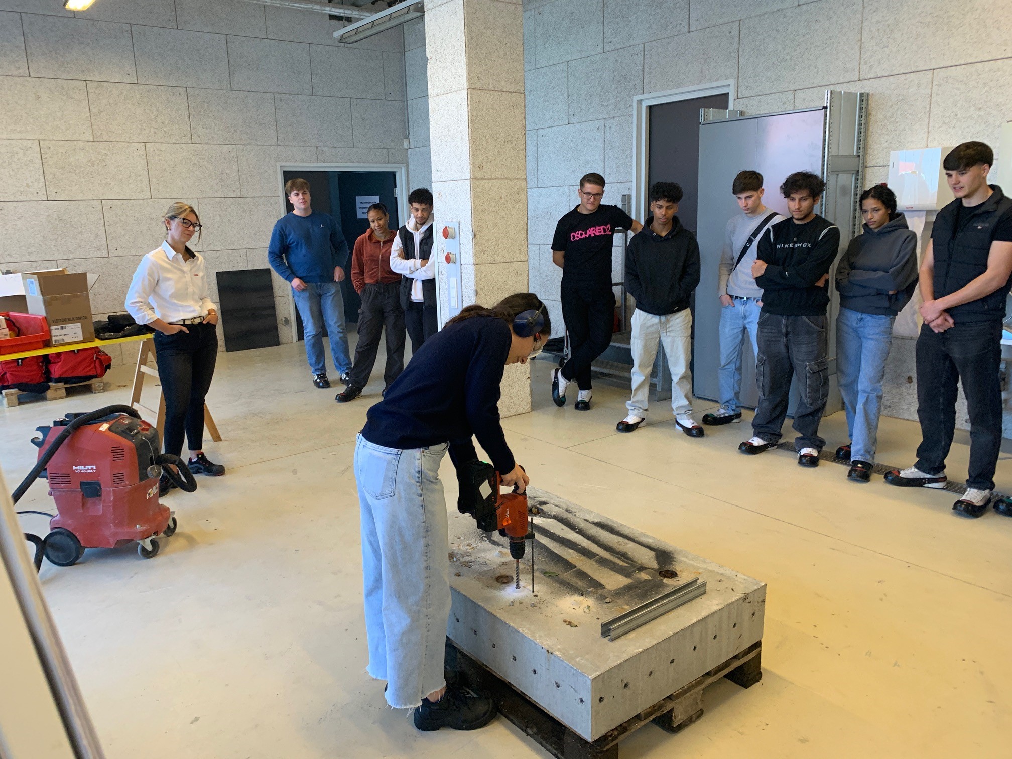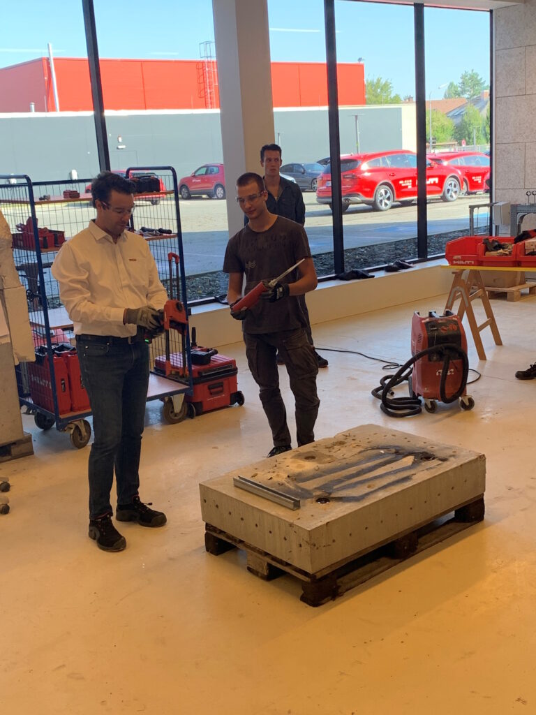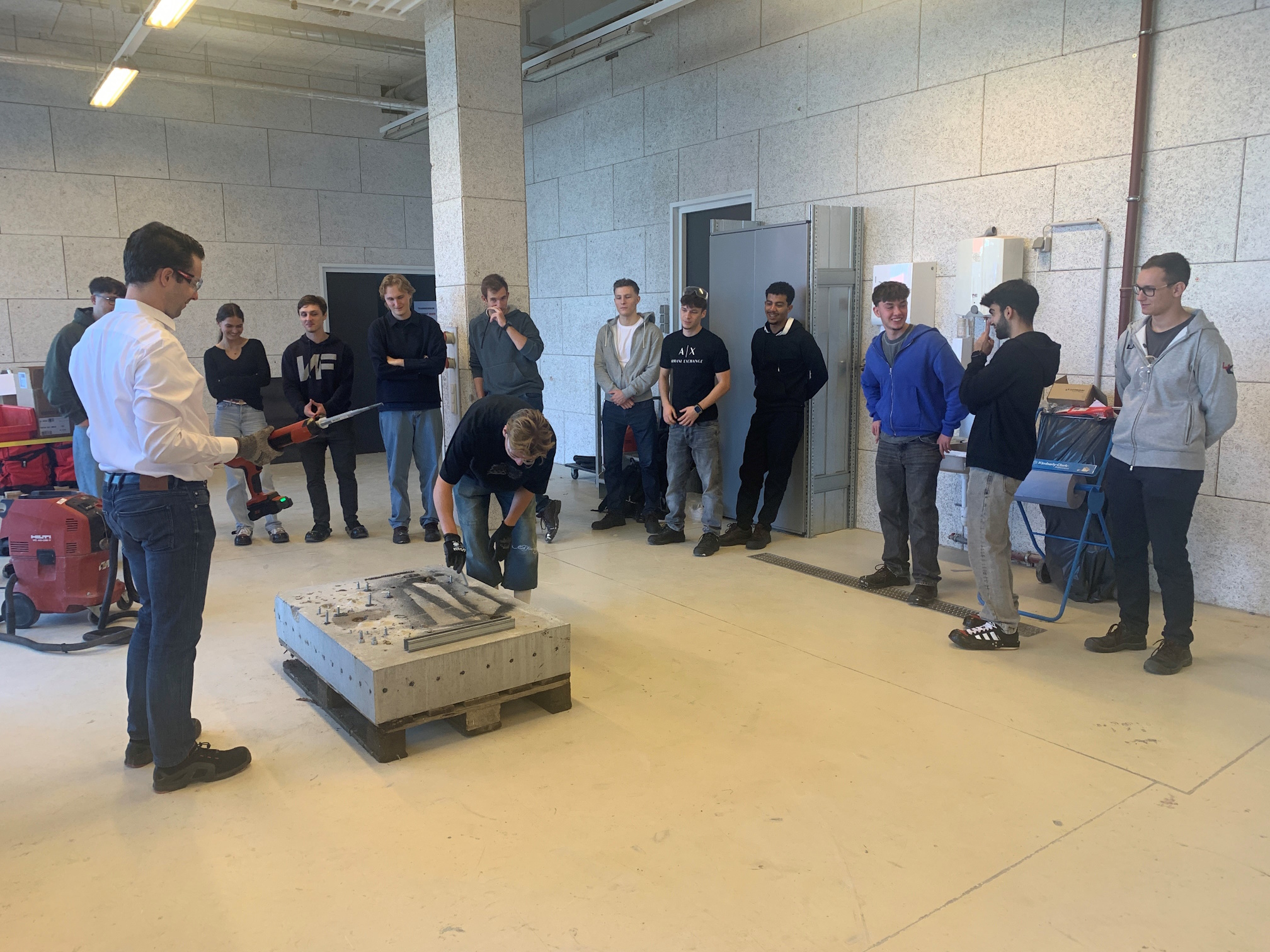 Ein besonderes Highlight der Exkursion war der Besuch des “Hands-on”-Bereichs in der Werkstatt. Hier hatten die Schülerinnen und Schüler die Möglichkeit, verschiedene Bohrmaschinen selbst auszuprobieren und sich mit deren Handhabung vertraut zu machen. Diese praktische Erfahrung ermöglichte ihnen einen direkten Einblick in die Anwendung der Maschinen und die Qualität der Produkte von Hilti.