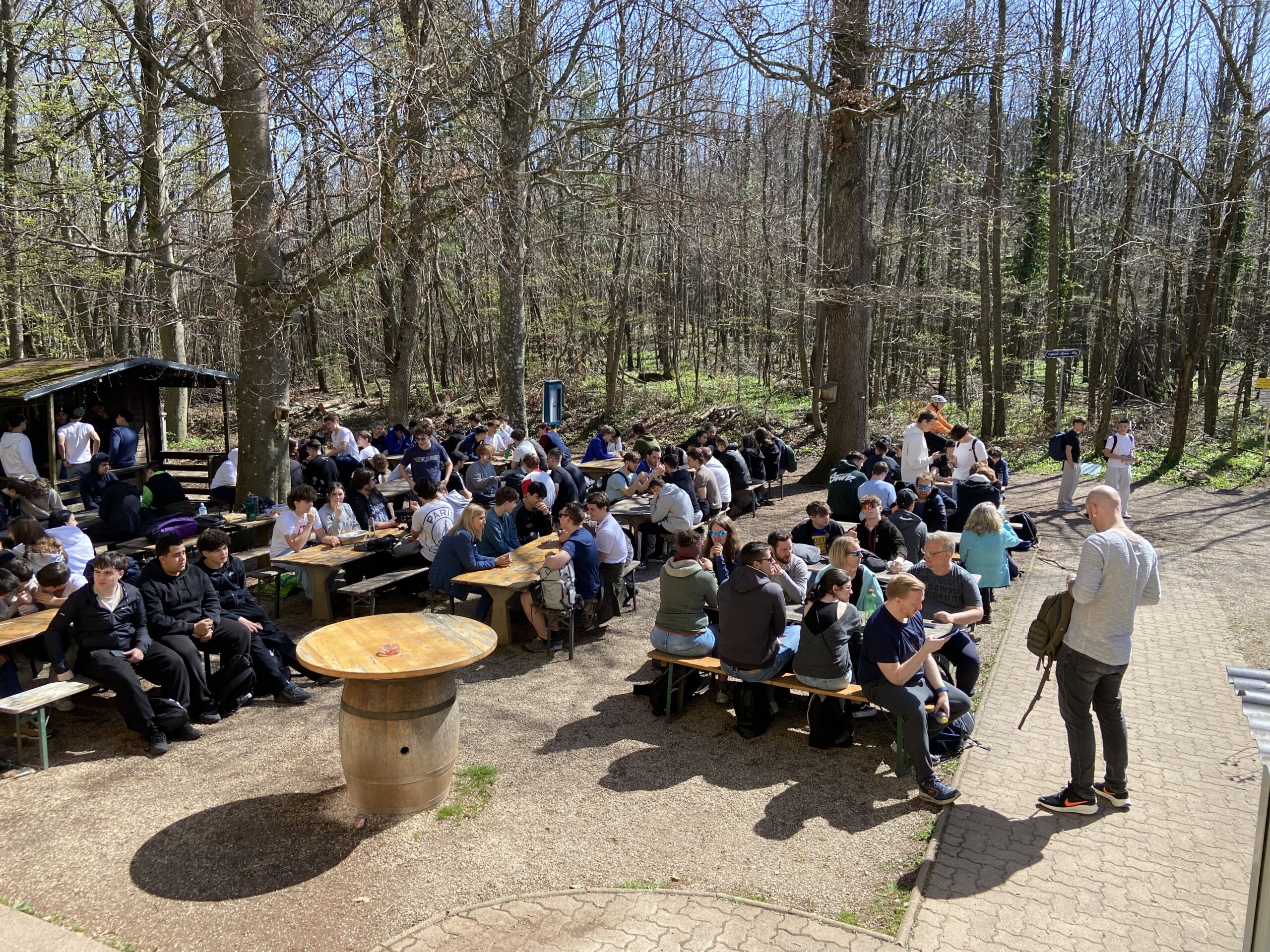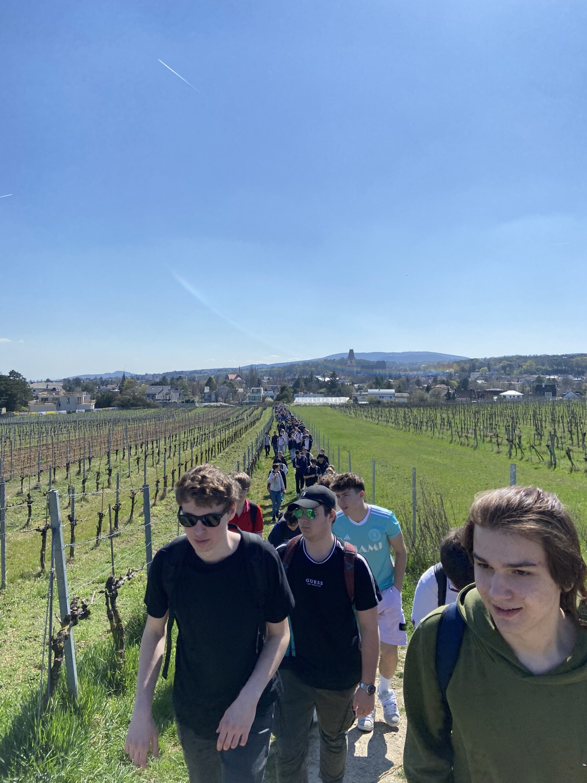 Rund 200 Schüler*innen der HWI machten sich am 4. April 2025 auf zum Wandertag – Ziel: die Perchtoldsdorfer Heide und der legendäre Salzstangerlwirt auf der Kugelwiese. Nachdem sämtliche Salzstangerl ausverkauft waren und genügend Sonne getankt wurde, stand der Abstieg am Plan. Auf dem Rückweg sorgte die wandernde Schülerkolonne für einen 15-minütigen Stillstand im Kreisverkehr beim Perchtoldsdorfer Marktplatz. Fazit: Viel frische Luft, volle Mägen – und ein Wandertag, der in die HWI-Geschichte eingeht.