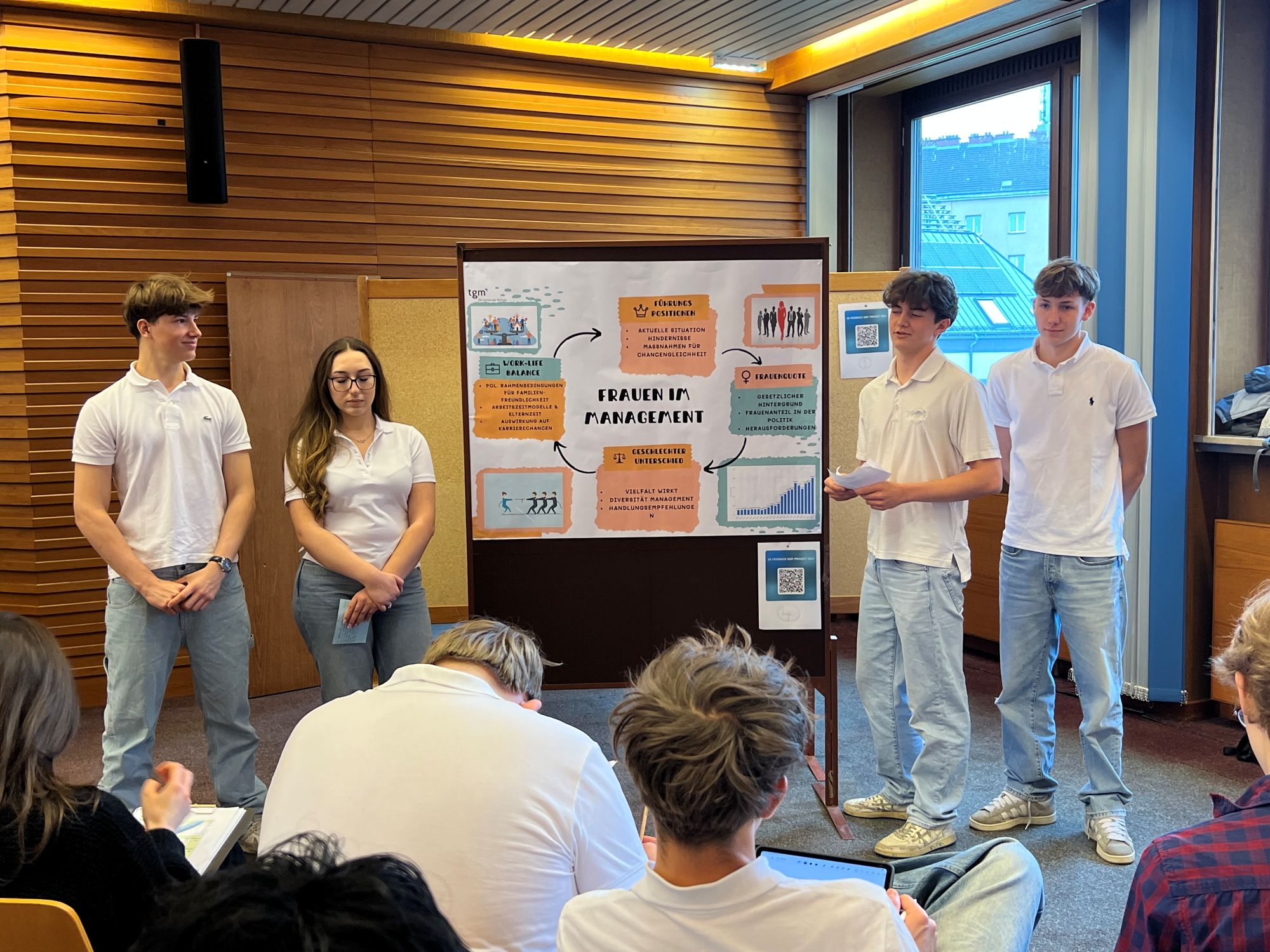 Seit mehreren Jahren ist das interdisziplinäre Projekt aus Geografie/VWL und Geschichte/Politische Bildung ein fester Bestandteil der dritten Jahrgänge unserer Abteilung. Unter dem gemeinsamen Leitthema „FEMINISMUS“ arbeiteten die Schülerinnen und Schüler der 3ABCHWI mehrere Wochen lang an verschiedenen Unterthemen, die schließlich im Exnersaal präsentiert wurden.