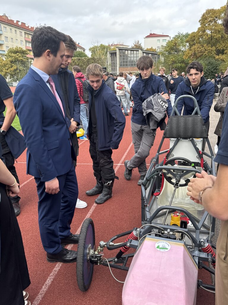 Die Challenge, die 2022 vom Bildungsministerium und von Magna ins Leben gerufen wurde, gilt mittlerweile als „Formel 1 der HTLs“. Ausgetragen am Schulgelände des tgm und organisiert durch die Abteilung Maschinenbau, eröffnete Bundesminister Christoph Wiederkehr am Mittwoch das Event und bewies damit den Stellenwert dieser Veranstaltung. Die hochkarätige Besetzung der Jury-Mitglieder, wie der ehemalige Landeshauptmann des Burgenlandes, Hans Niessl und mehrere Universitätsprofessoren der TU Wien, TU Graz, JKU Linz und der FH Technikum Wien, zeigten sich von der Qualität der Leitungen der Schülerinnen und Schüler begeistert.