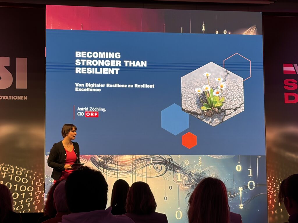 „Astrid Zöchling, CIO des ORF, zeigte in ihrer Präsentation auf, welche stetig wachsenden Chancen und Risiken der Einsatz Künstlicher Intelligenz für eine vertrauenswürdige und journalistisch verantwortete Berichterstattung mit sich bringt.