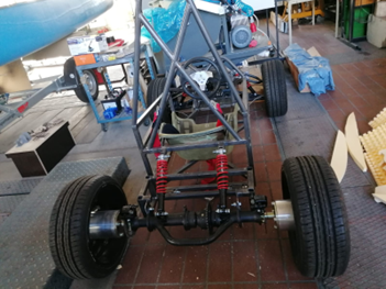 Nachdem das Konzept festgelegt war, wurde das Fahrzeug in drei Teilbereiche aufgeteilt. Dadurch konnte sich jedes Teammitglied auf ein Gebiet spezialisieren. Nachdem jedes Teammitglied seinen Teilbereich ausgelegt und konstruiert hat, wurden diese zu einer Baugruppe zusammengestellt. Anschließend konnte mit der Fertigung der einzelnen Teile wie der Rahmen, die Aufnahmen und den Adapterplatten begonnen werden. Zu guter Letzt wurden diese zu einem Fahrzeug zusammengebaut.