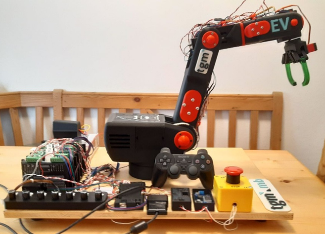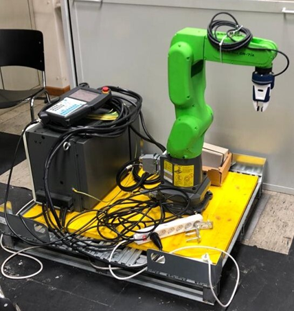 Ein vorhandener Knickarmroboter aus dem Vorjahr soll für den praktischen Einsatz im Labor sowie für Präsentationszwecke am Tag der offenen Tür fertiggestellt werden. Der Roboter soll durch die Besucher sicher und intuitiv gesteuert werden können. Außerdem sollen Demo-Programme vorhanden sein.