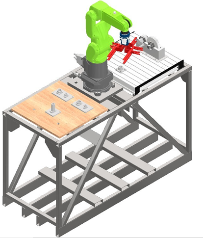 → Lager- und Arbeitsplatte für die Arbeiten des Roboters