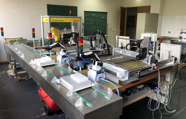 Die bestehende Roboterstraße soll um eine Pick and Place Anwendung erweitert werden. Diese bewegt das Werkstück zwischen Bearbeitungsplatz und Förderband. Es soll für zwei Fertigungszellen eine Pick and Place Anwendung aufgebaut werden. Die Unterdruckerzeugung für die Greifer muss geplant und aufgebaut werden. Weiters sollen alle Fertigungszellen um eine Ampel erweitert werden.